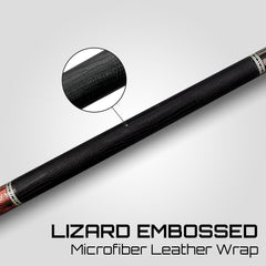 Inspired by exquisite Cocobolo wood, the RETRÔ™ Cocobolo Leather Wrap & Point cue exudes luxury and sophistication. The cue butt showcases a luxurious lizard leather wrap, highlighted by a striking 6-point design and five elegant rings.